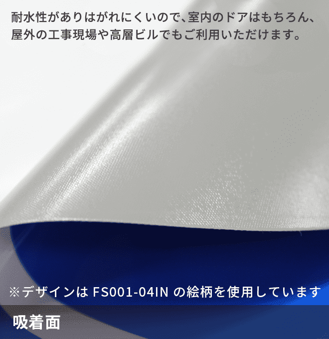| 特徴 | 耐水性がありはがれにくいので、室内のドアはもちろん、屋外の工事現場や高層ビルでもご利用いただけます。 |