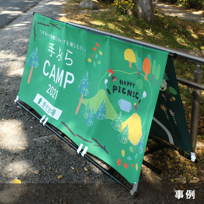 のぼり旗をそのまま折りたたんで作るA型のぼり看板は、のぼり旗を自社製造で安価に制作できるのぼりキングだからこそ低価格が実現できました!通常のA型看板(アルミ製やブラックボード)と比較しても、A型のぼり看板は布製なので安価です!