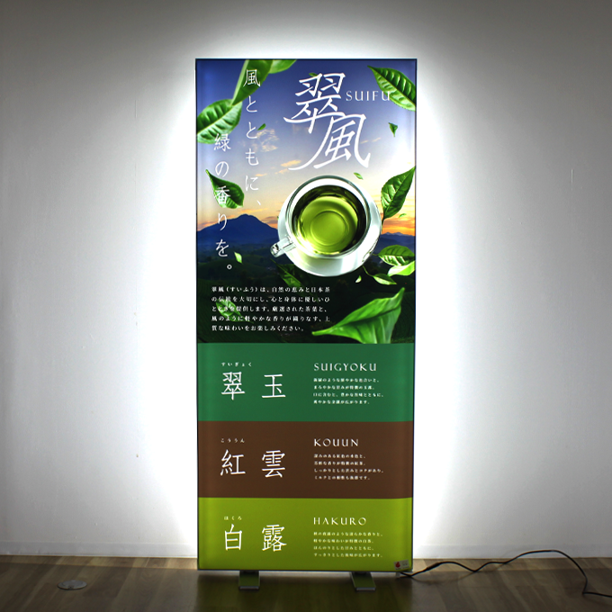 内照式のため鮮やかに発色し、暗い場所でもデザインを目立たせることができる、通常のバナースタンドでは実現しにくい存在感をアピールすることができます。