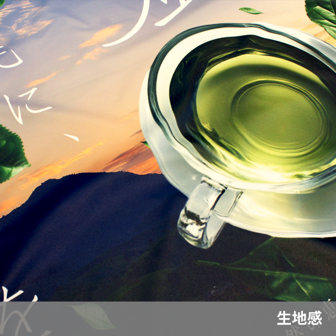 生地には「クリスタル」と呼ばれるポリエステル繊維を使用しており、光を透過するのが特徴の生地です。 細かい文字はもちろん、黒や赤などの濃い色も鮮明に映えるため、鮮やかで美しい印象に仕上がります。