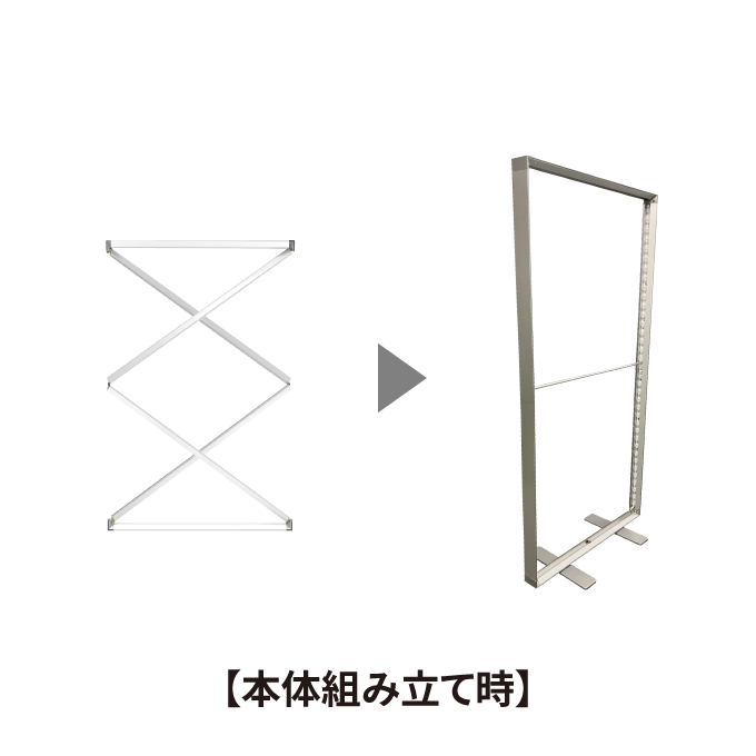 テンションファブリックスタンドはファブリック(布)をスタンドのフレームにはめ込み、内照の光により色鮮やかに見せる商品です。