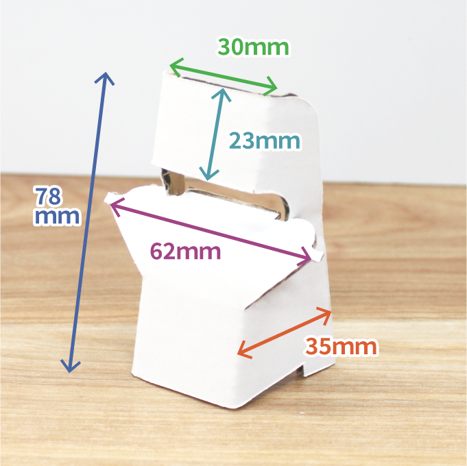 | サイズ | 組み立て前:高さ78mm×幅100mm 組み立て後:高さ78mm×幅62mm×奥行35mm |