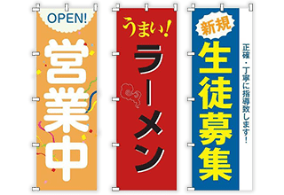 また、フォントを変えることで伝わる印象が変わるので、店舗やイベントなど使う状況の雰囲気に合わせて書体を使い分けることもポイントです。フォントは、店舗で使い見やすさを求めるならゴシック体、イベントなどで使う華やかな印象ののぼりならデザイン書体を選ぶ事をおすすめします。