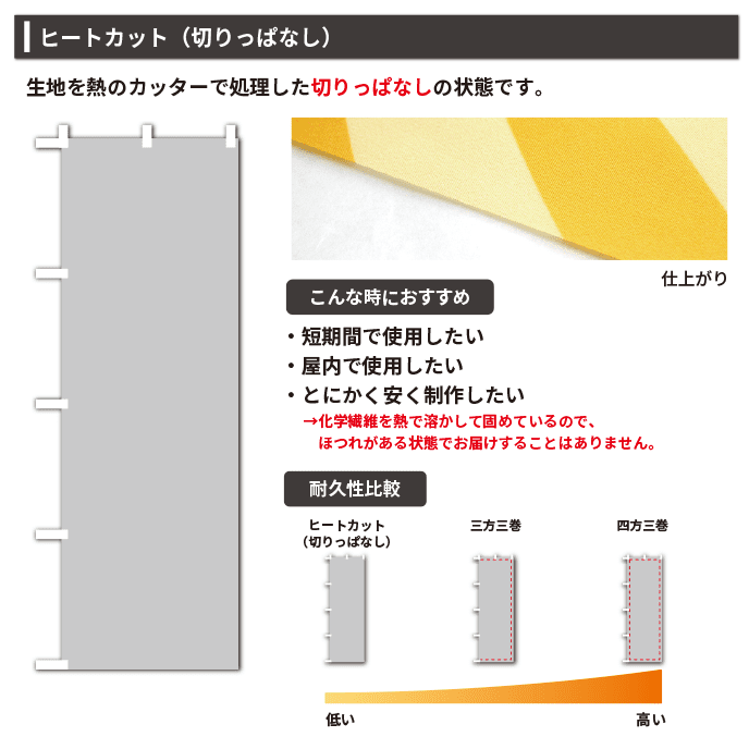 ※レギュラーのぼり(600mm×1,800mm)、非防炎、周囲ヒートカット、チチ付きの場合